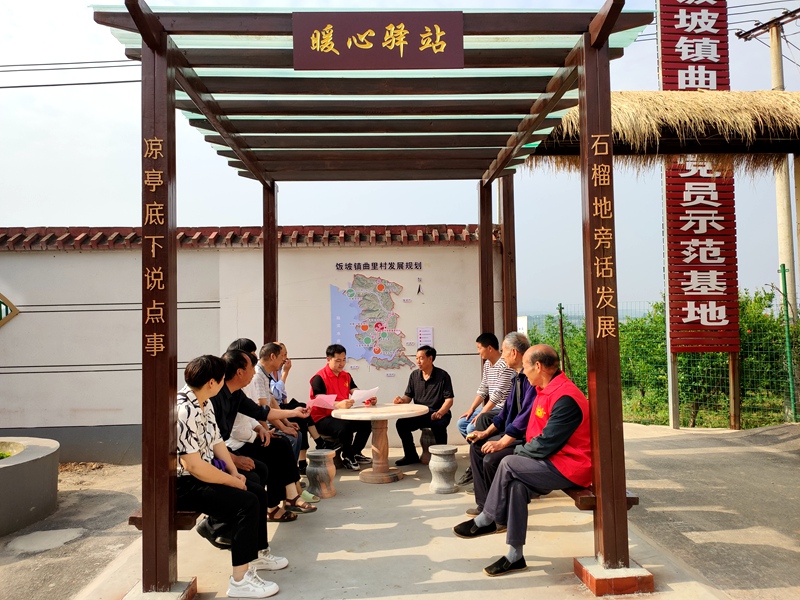 傍晚时分,凉风习习,饭坡镇曲里村的村民吃过晚饭,三三两两缓步走向文化广场的凉亭。镇、村人大代表早已等候在这里,他们十分熟稔,随意坐下,“拽”起一个话题就唠了起来。