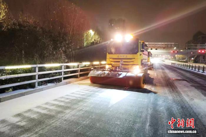 图为撒布融雪剂作业现场。郑州市城市管理局供图