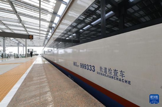 4月15日,检测列车即将驶出雄安站。新华社记者邢广利摄