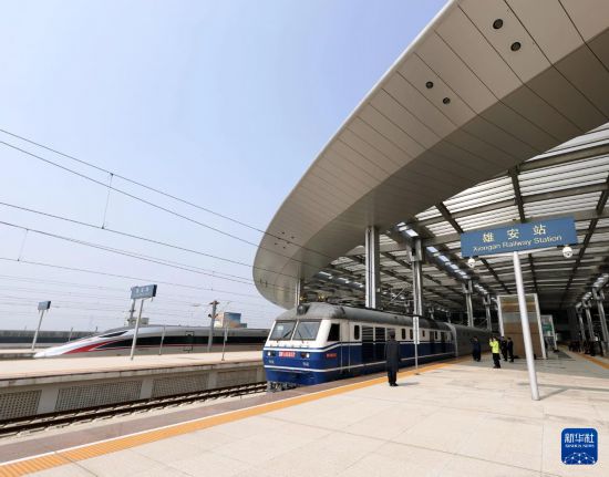 4月15日,检测列车驶出雄安站。新华社记者邢广利摄