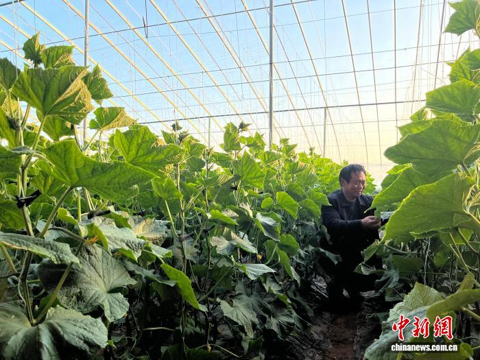 种植户宋永兴正在采摘成熟的黄瓜。中新网记者范丽芳摄