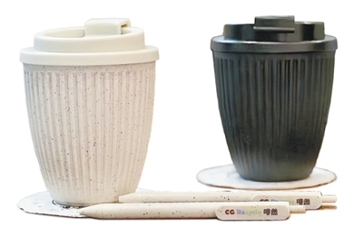 天津商业大学“啡同小科”团队利用咖啡渣制作的环保随行杯。