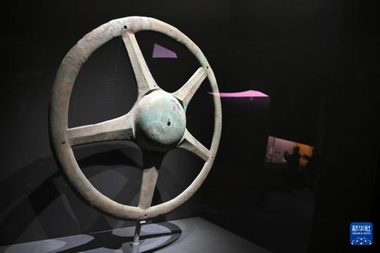 这是展出的太阳形青铜器(1月18日摄)。
