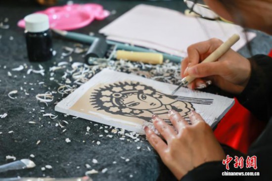 图为民众体验木版年画制作。姚子文摄
