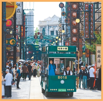 二七纪念塔首先映入眼帘。每到整点,钟声响彻城市上空。出租车司机王磊说:“我接送外地客人,都推荐他们来二七塔看看。塔不高,但往那儿一站,就能感受到城市的精气神。”比邻的德化街,始建于1905年,因铁路商埠而兴。如今复古骑楼与潮流商铺相融,繁华依旧。