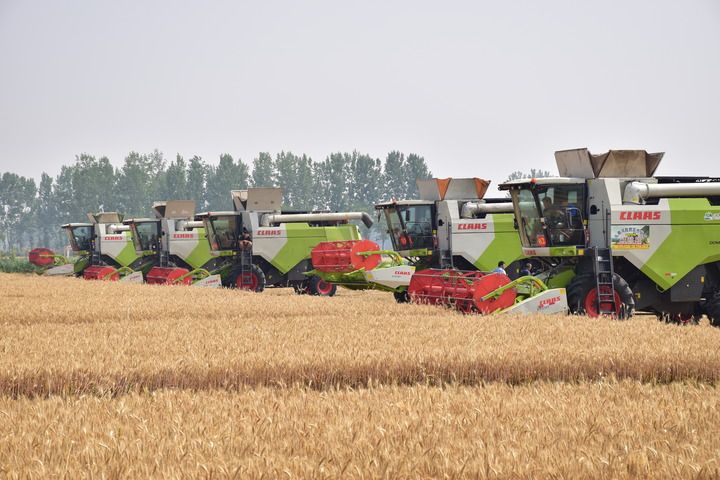 5月20日上午,河南邓州市2025年小麦机收减损技能大比武现场。(新华社记者郑家宝摄)