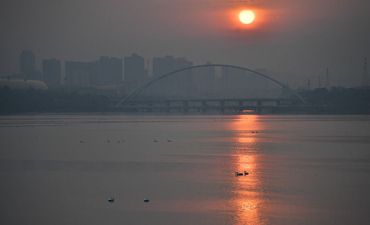 2023年11月9日,大天鹅在三门峡市天鹅湖国家城市湿地公园内栖息。除署名外组图均为新华社记者吴刚摄