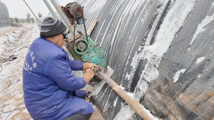 1月19日,在卫辉市汲水镇下园村,种植户正在加固大棚。李冰砚摄